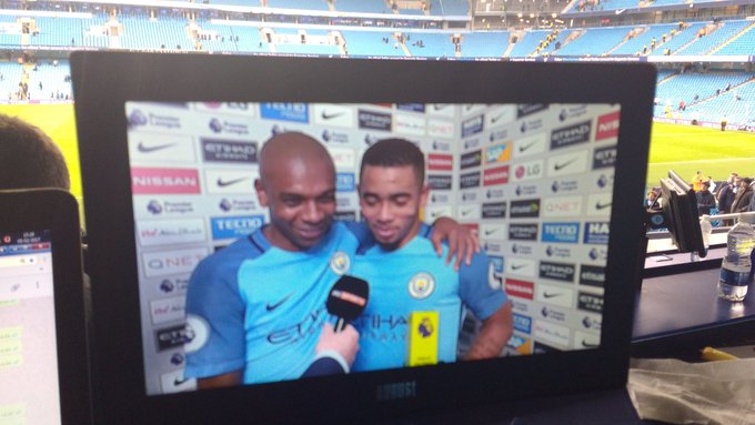 O nosso @fernandinho entregando o prémio de "Melhor Jogador do Jogo" a @gabrieljesus33PARABÉNS GABRI! #MCFCPortugues
